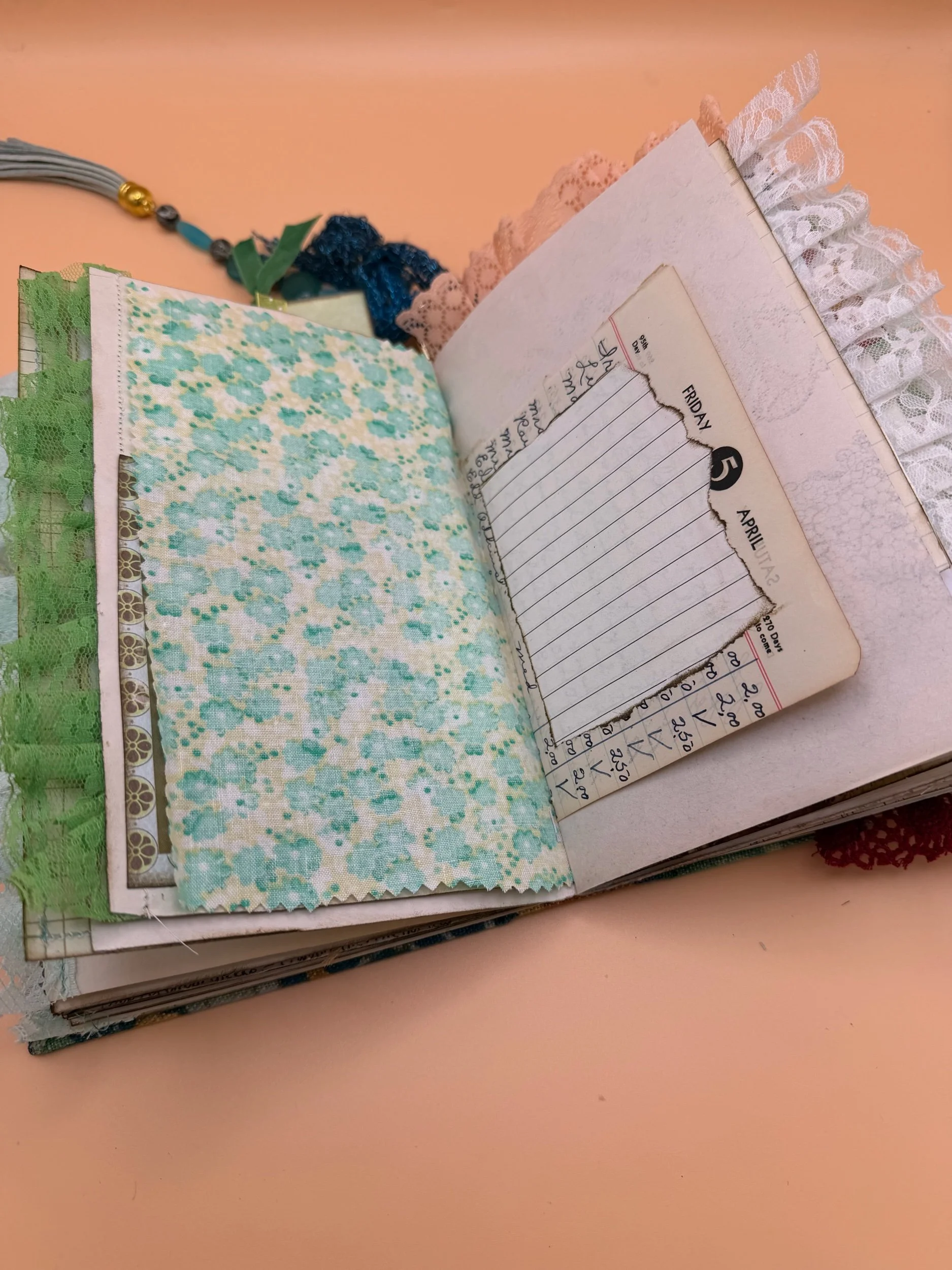 This one-of-a-kind, handmade writing journal is filled with charm, texture, and creative surprises. With 126 thoughtfully curated pages, it’s designed for capturing your thoughts, stories, prayers, plans, and everyday inspiration — with lots of beautiful details along the way.