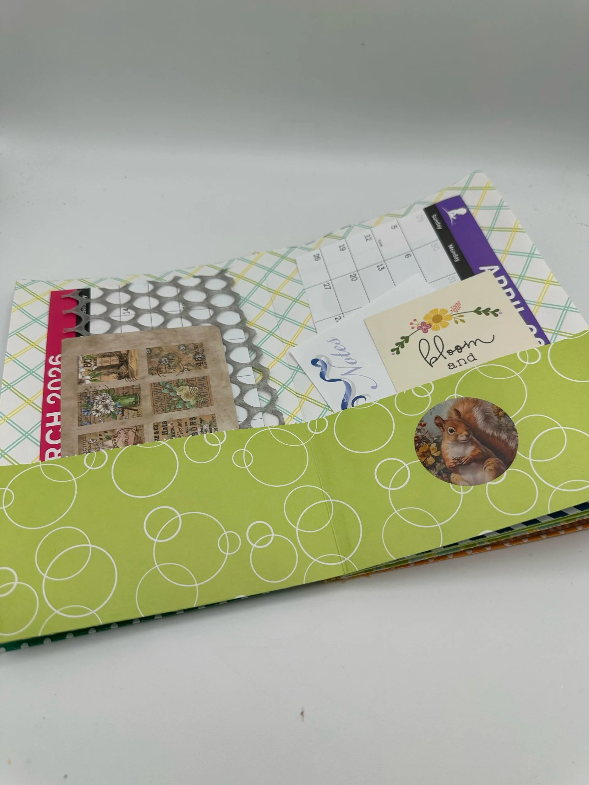 Each page is packed with plenty of spots for note-taking, pockets for tucking in reminders or receipts, and fun ephemera that adds personality and charm to the whole piece. It’s practical, creative, and designed to make organizing feel inspiring instead of overwhelming.