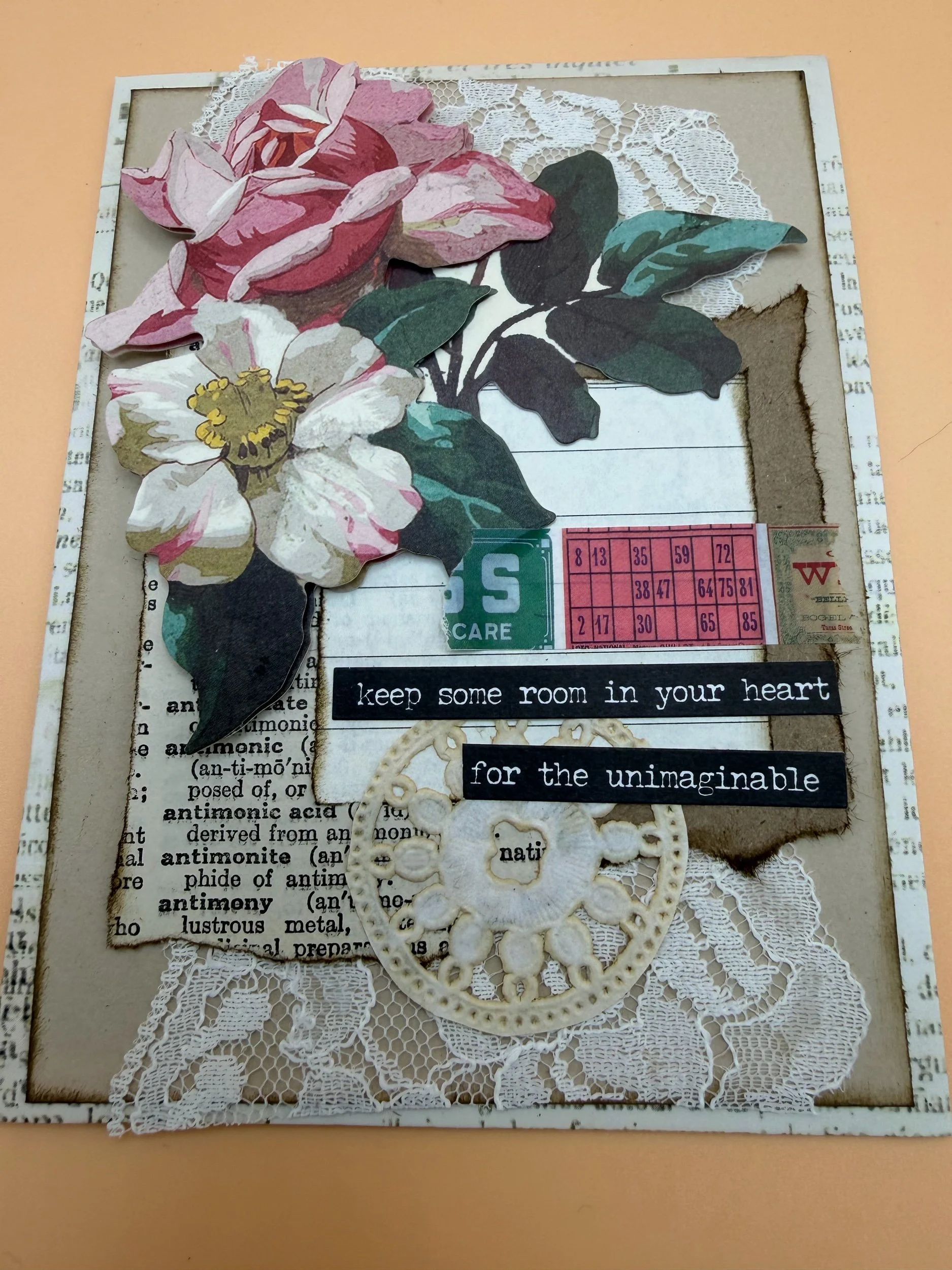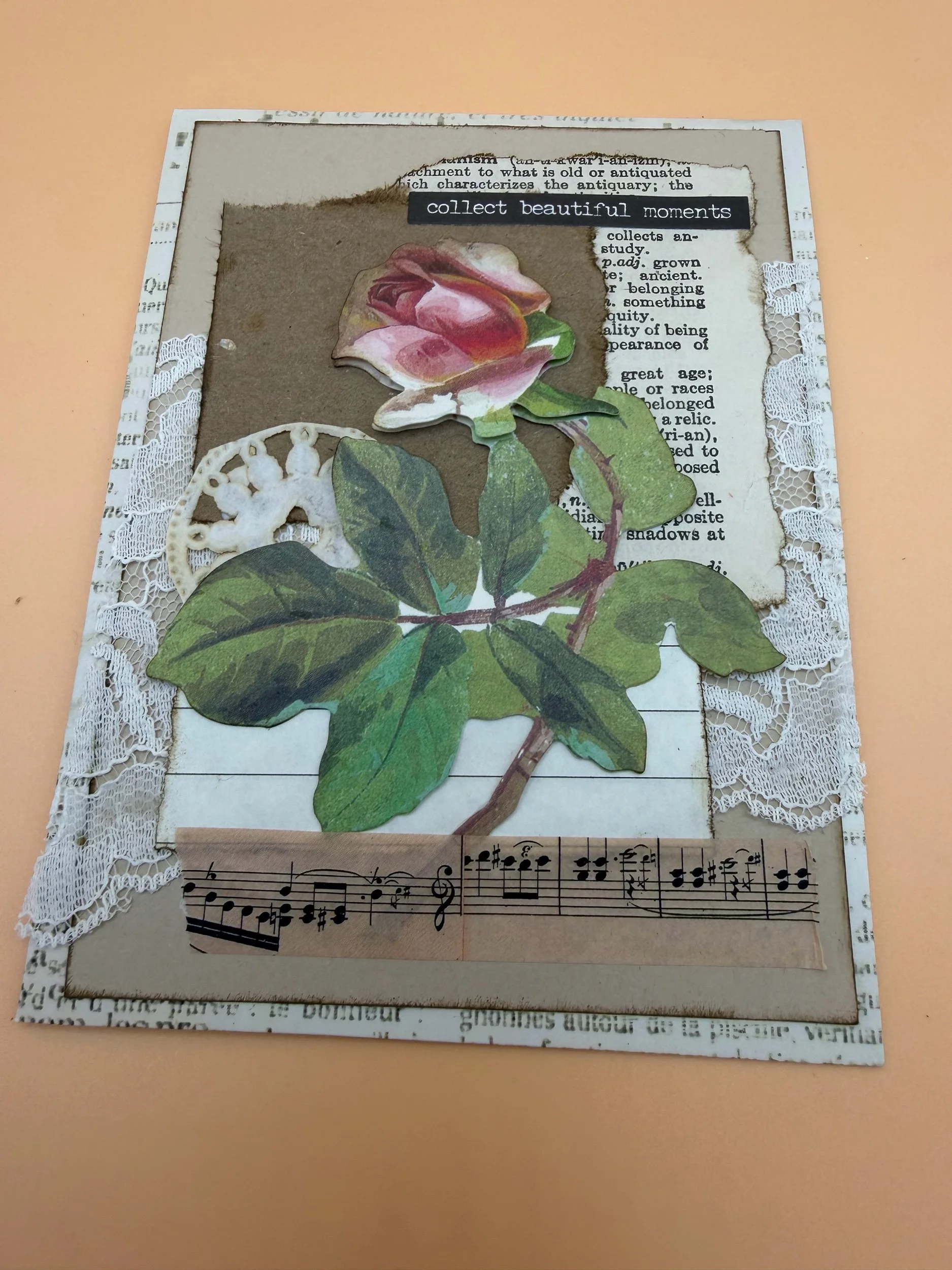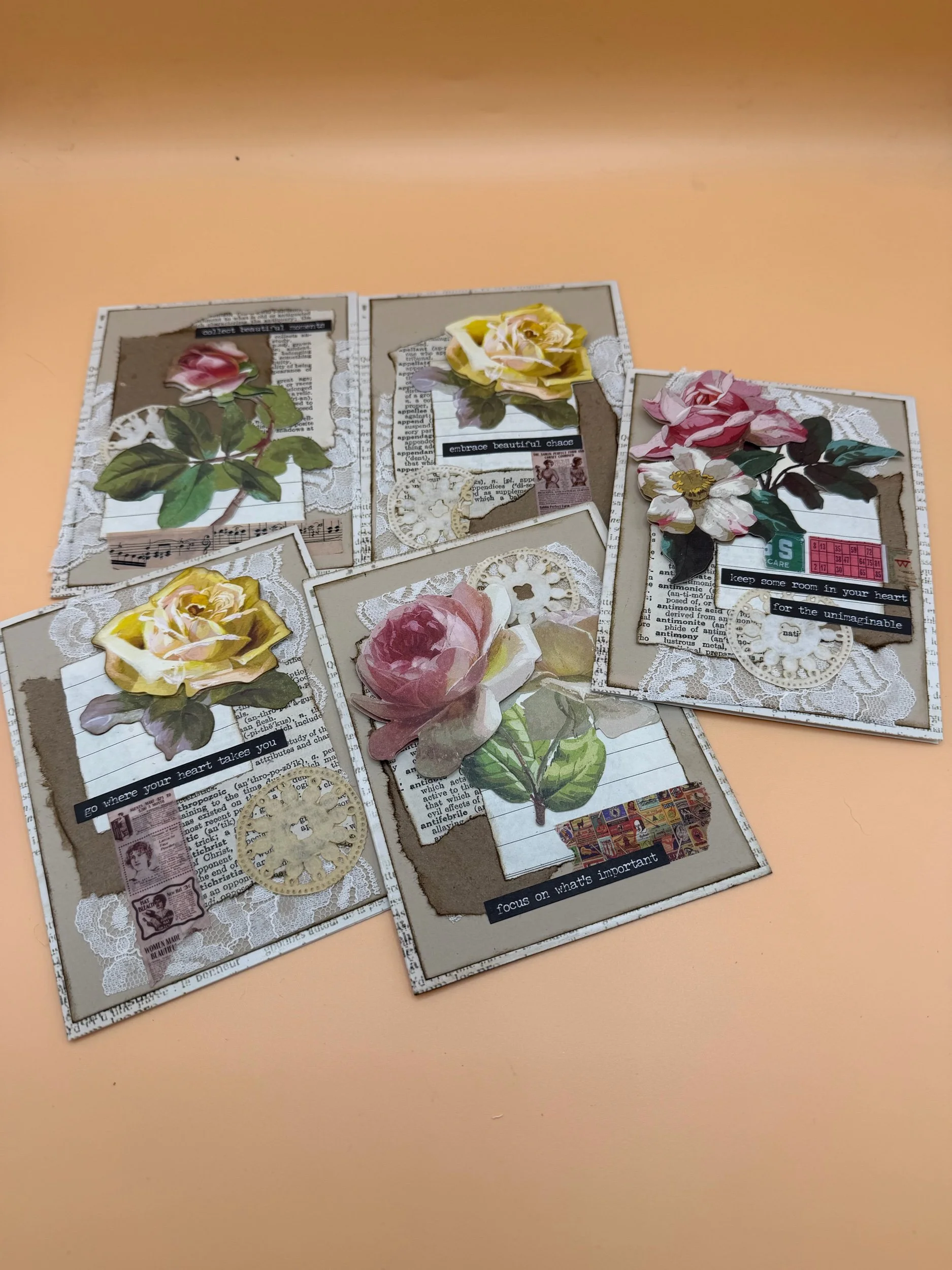 Books and Ephemera › Handmade Rose Collage cards Image 1 of 6 Image 2 of 6 Image 3 of 6 Image 4 of 6 Image 5 of 6 Image 6 of 6 Handmade Rose Collage cards $12.00 Only 1 left in stock 5 blank inside cards with envelopes. Add To Cart Added! 5 blank inside cards with envelopes. Reviews Reviewer Name Review Date Star Rating Description Posted on Etsy Product Show More