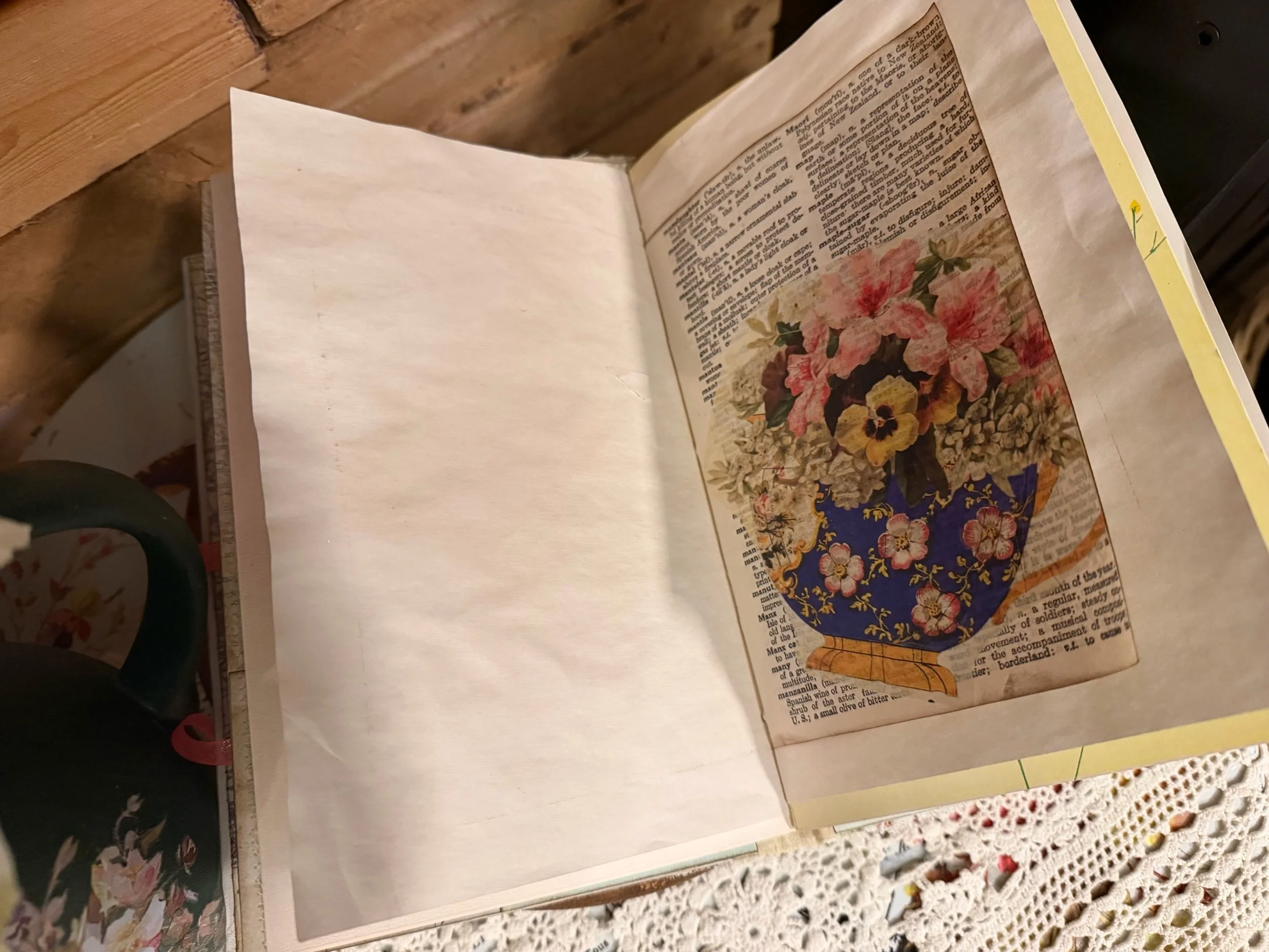 Inside you’ll find a mix of quality writing pages along with handmade and vintage ephemera tucked throughout — things like pockets, tags, journaling cards, layered papers, and unique old-world pieces that add character and spark creativity. Every page turn gives you something a little special while still leaving plenty of space to write.