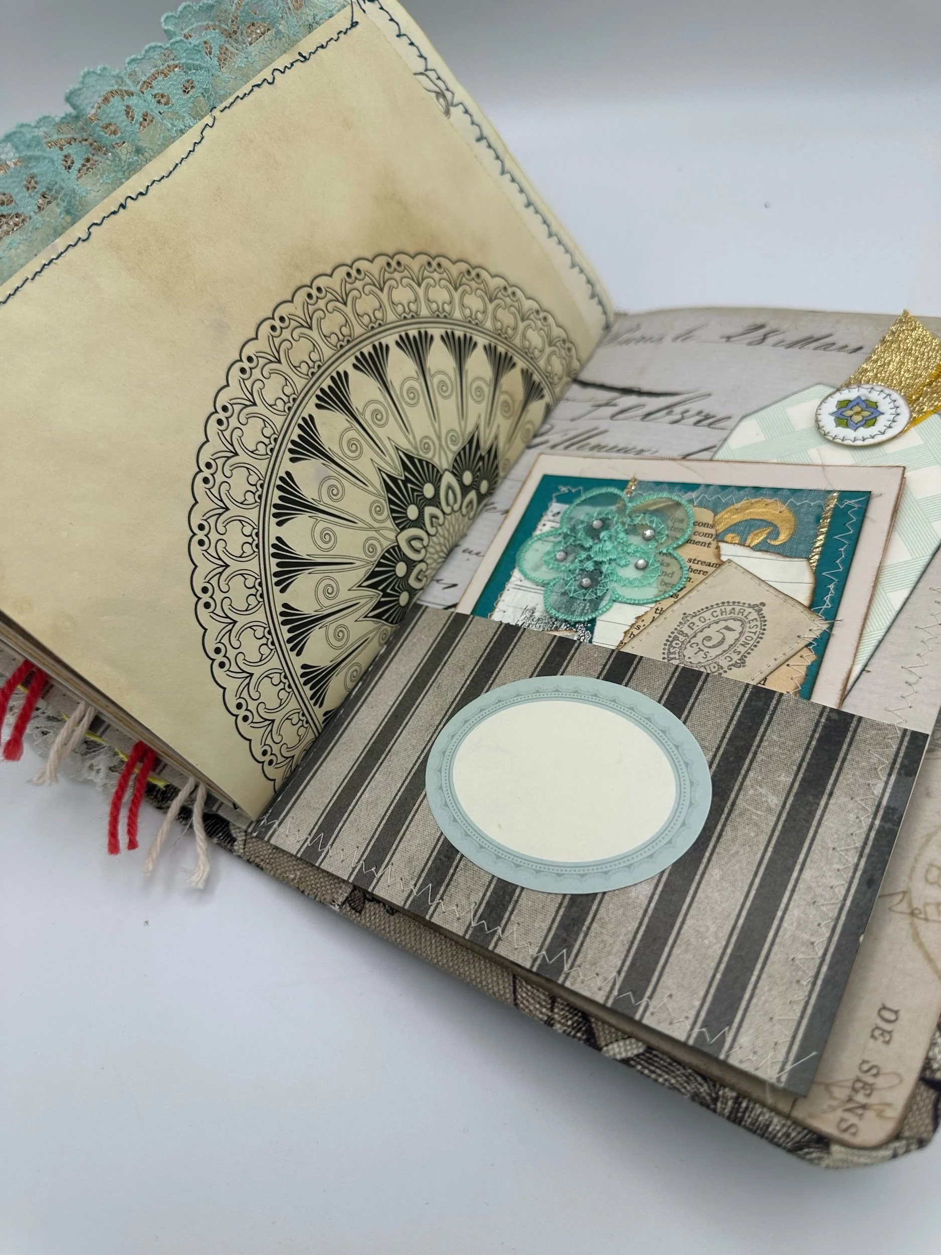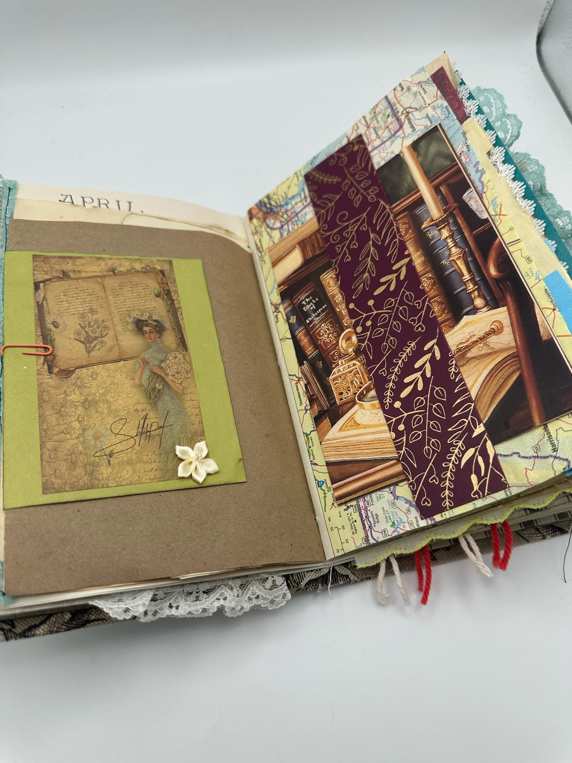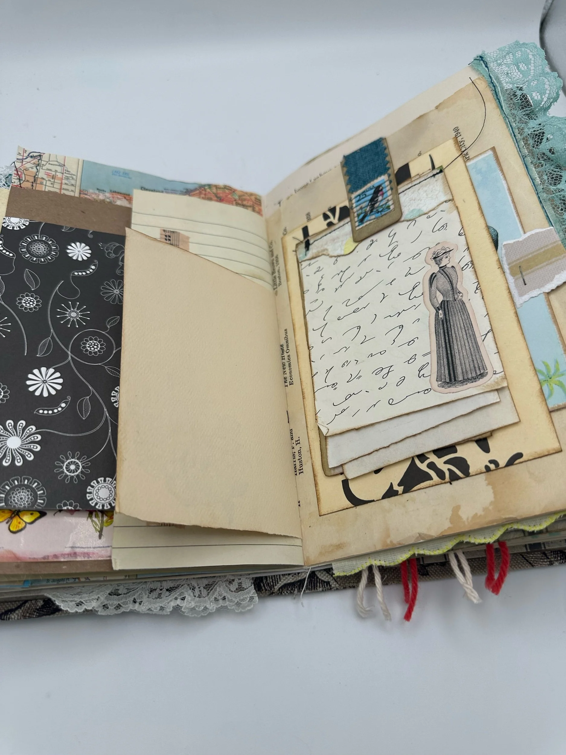 Inside you’ll find a mix of quality writing pages along with handmade and vintage ephemera tucked throughout — things like pockets, tags, journaling cards, layered papers, and unique old-world pieces that add character and spark creativity. Every page turn gives you something a little special while still leaving plenty of space to write.
