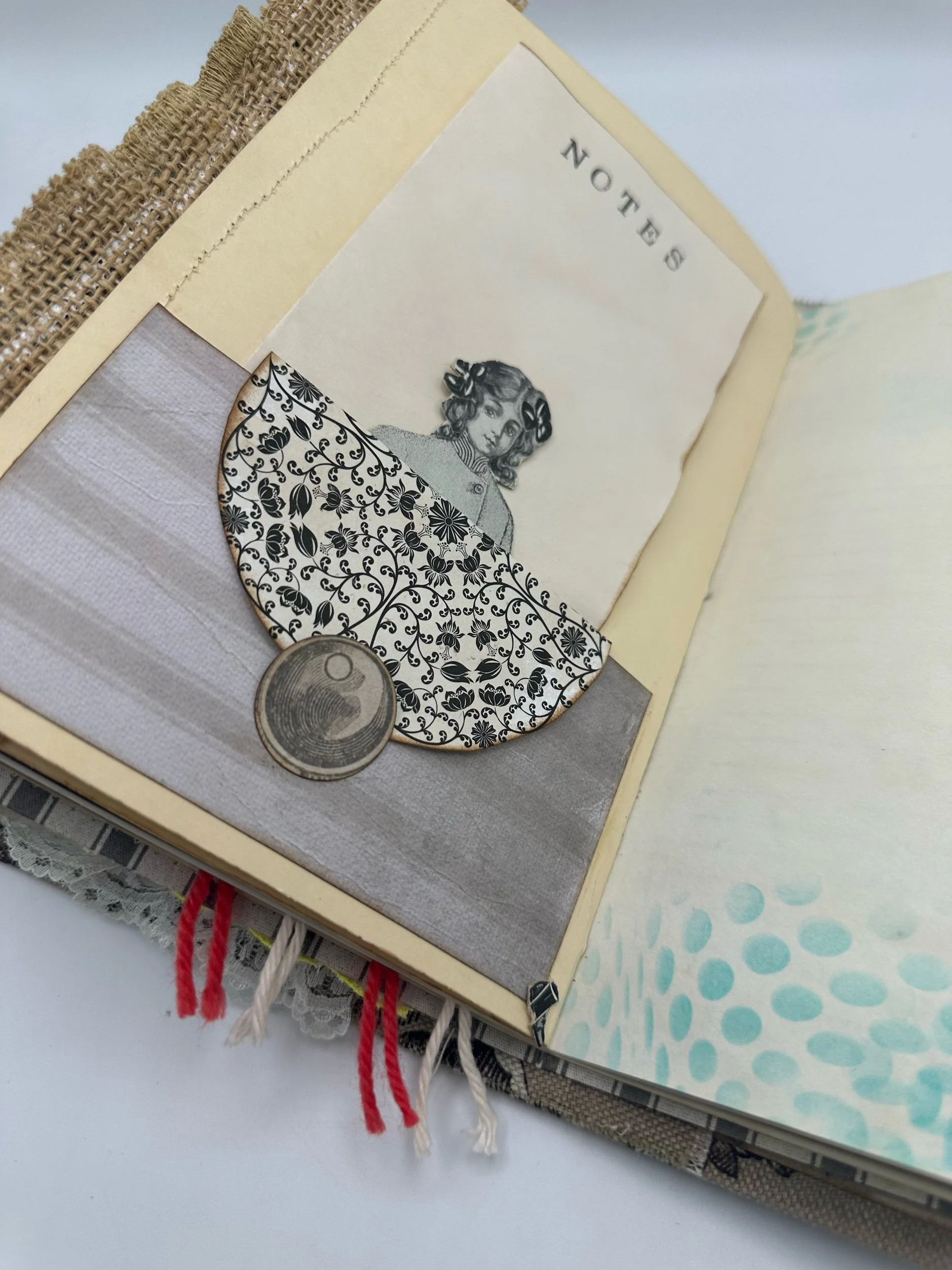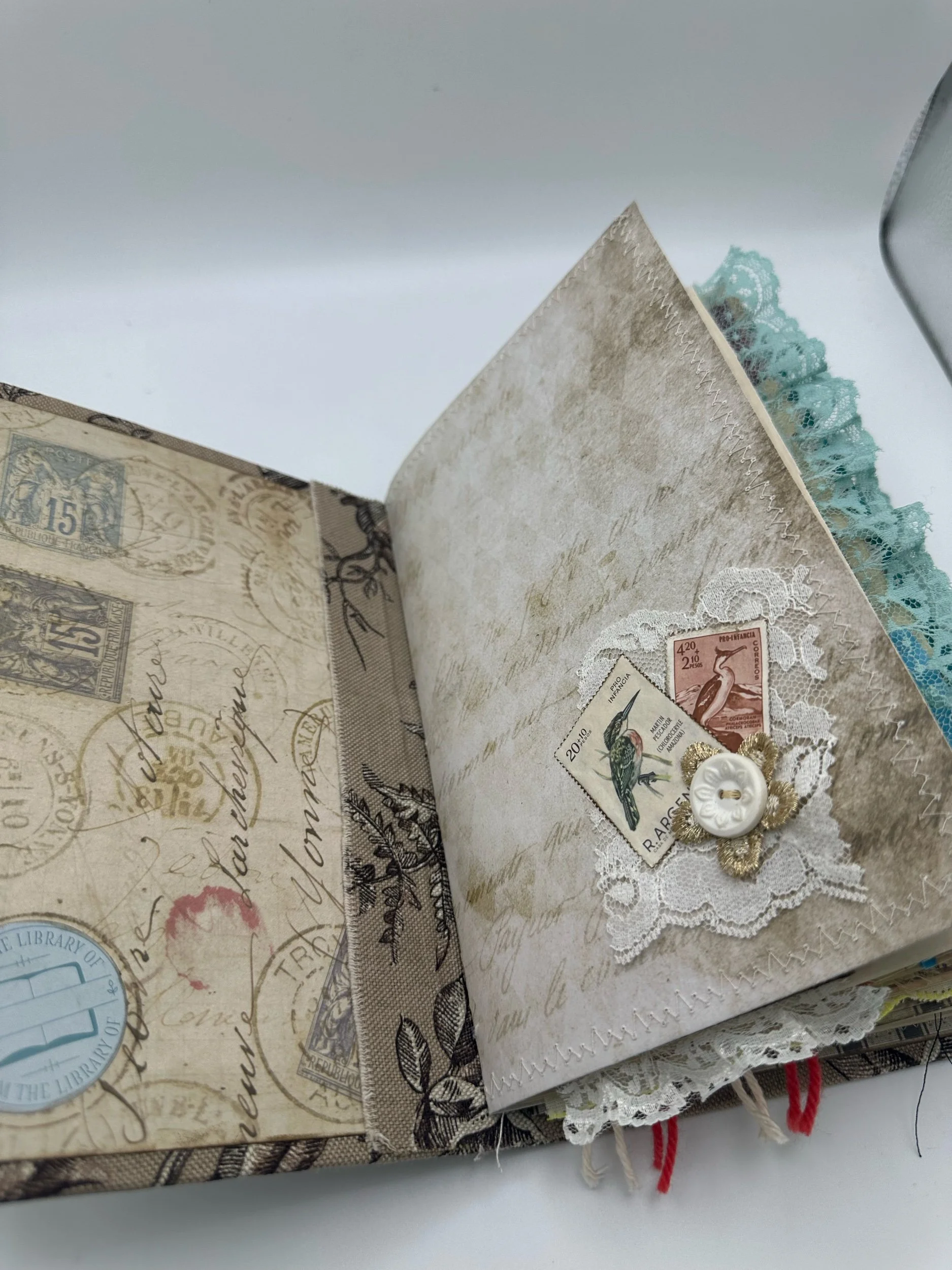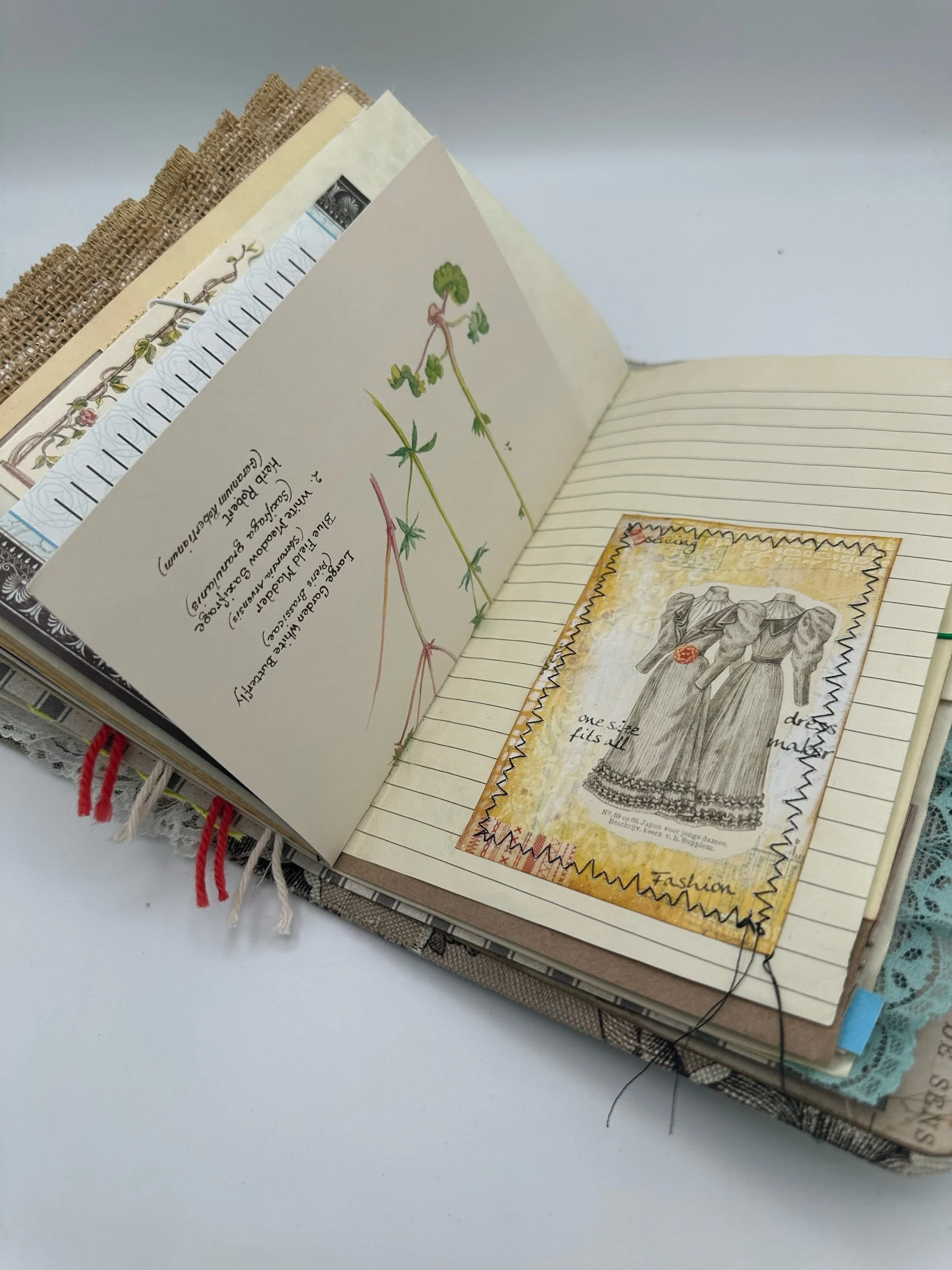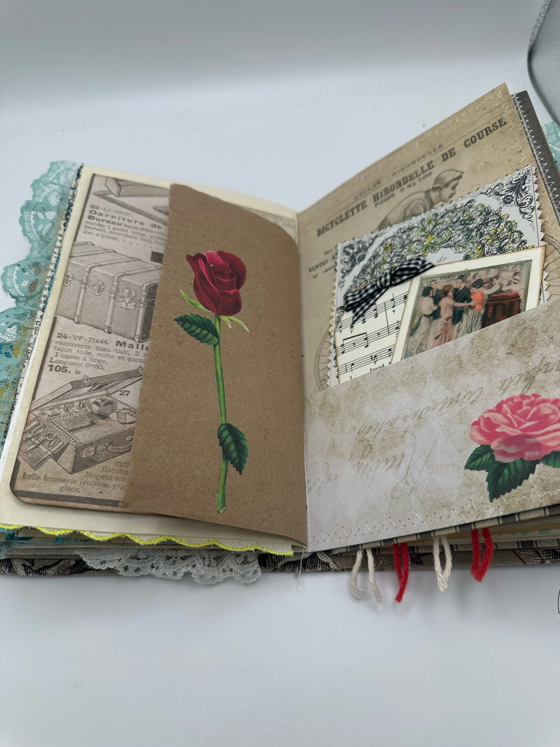 Inside you’ll find a mix of quality writing pages along with handmade and vintage ephemera tucked throughout — things like pockets, tags, journaling cards, layered papers, and unique old-world pieces that add character and spark creativity. Every page turn gives you something a little special while still leaving plenty of space to write.