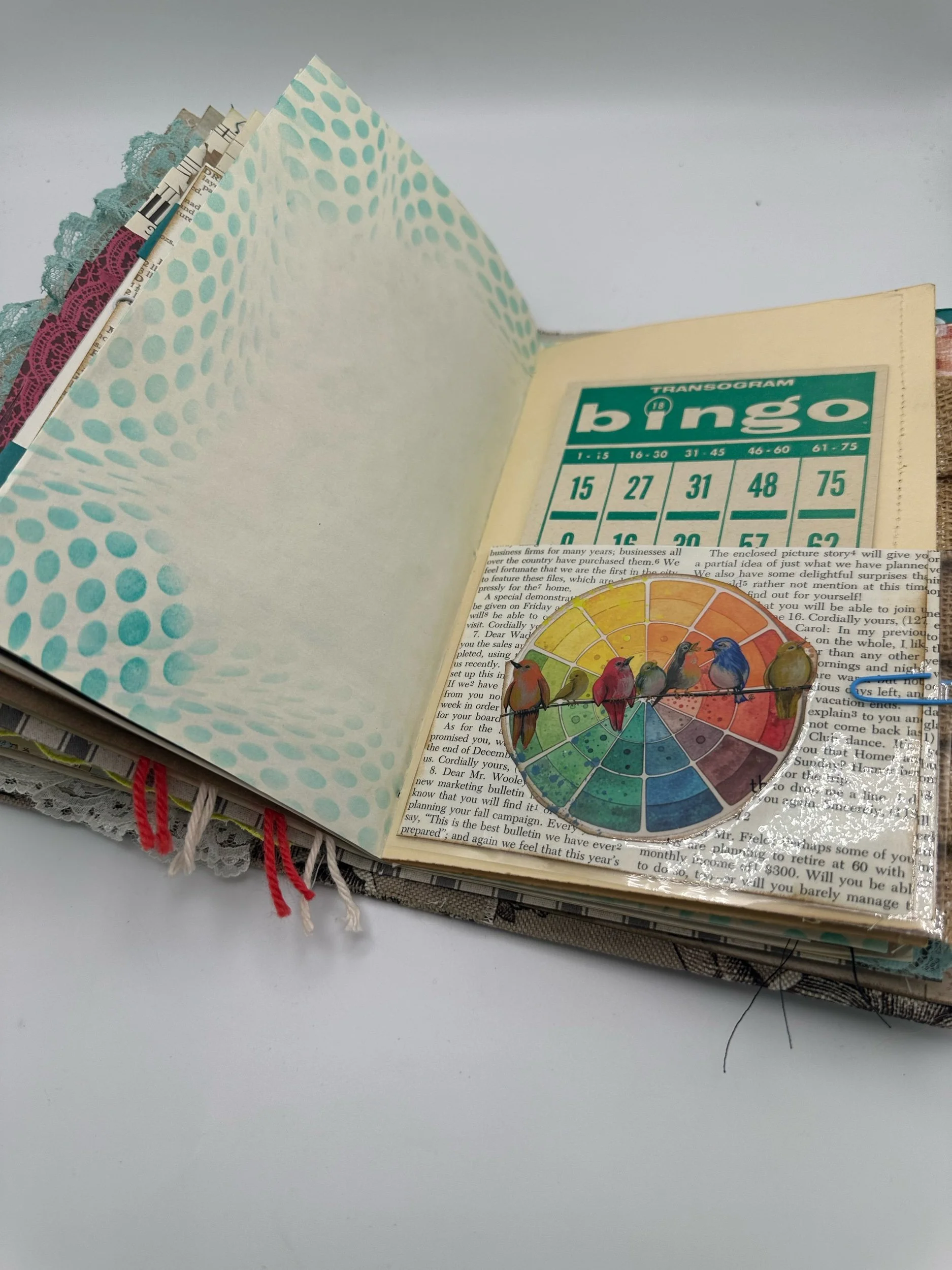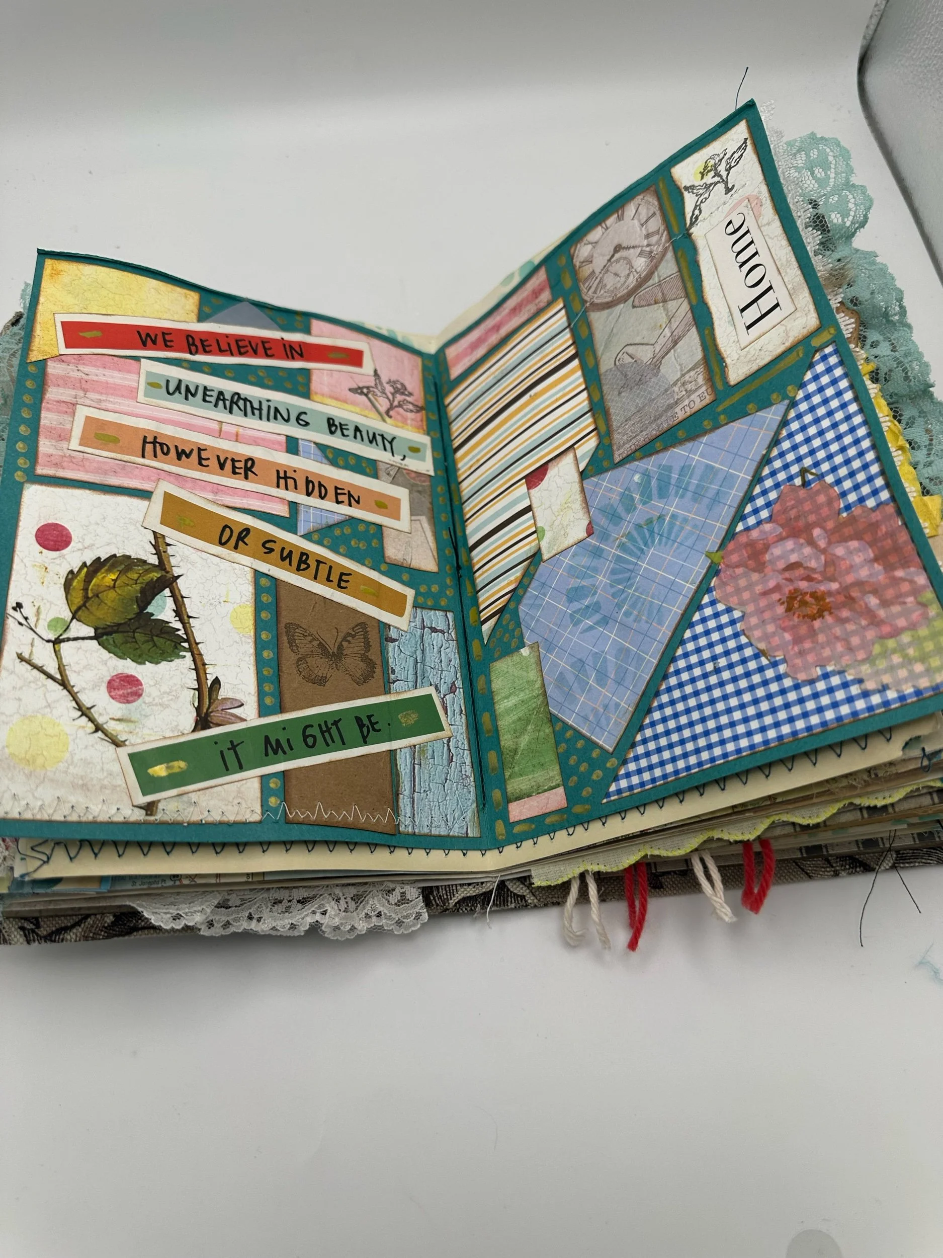 This one-of-a-kind, handmade writing journal is filled with charm, texture, and creative surprises. With 112 thoughtfully curated pages, it’s designed for capturing your thoughts, stories, prayers, plans, and everyday inspiration — with lots of beautiful details along the way.