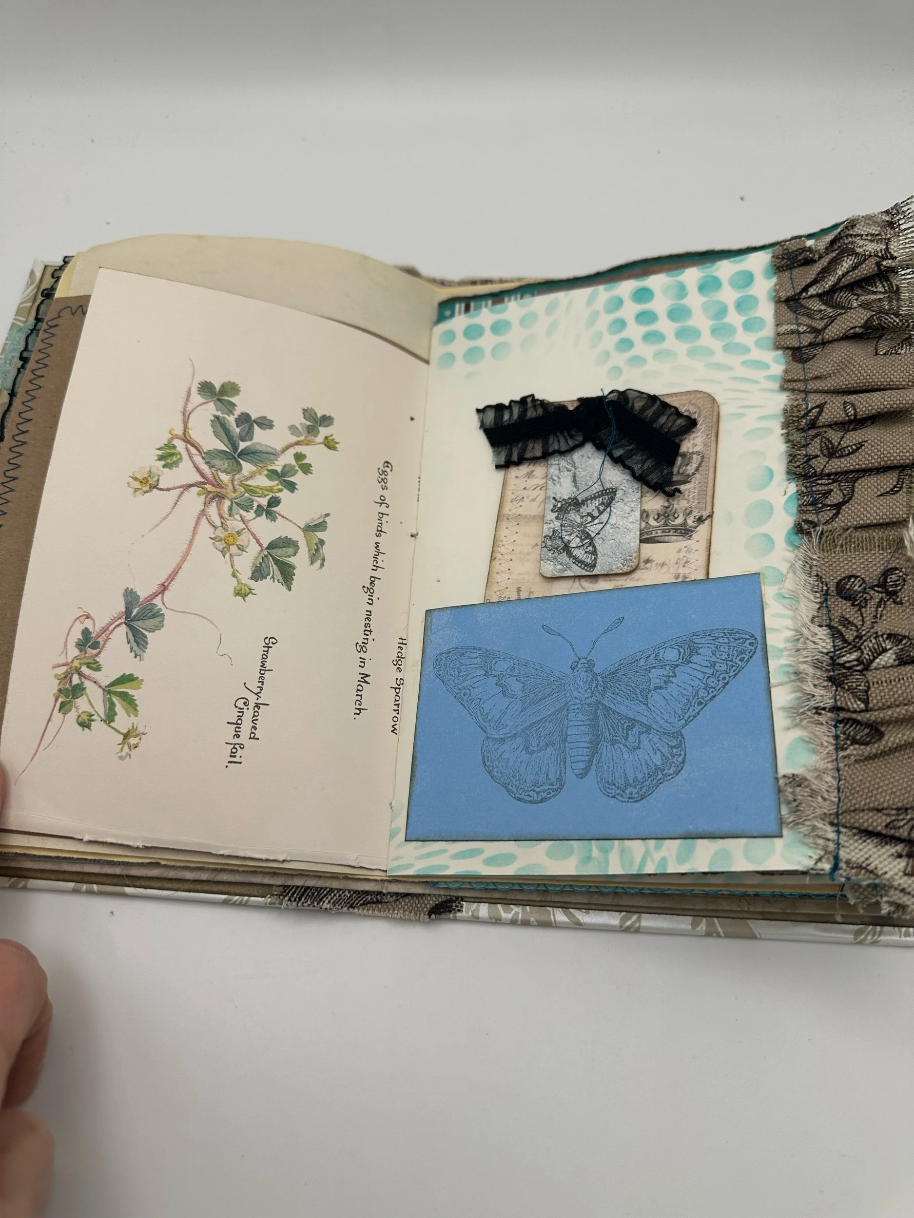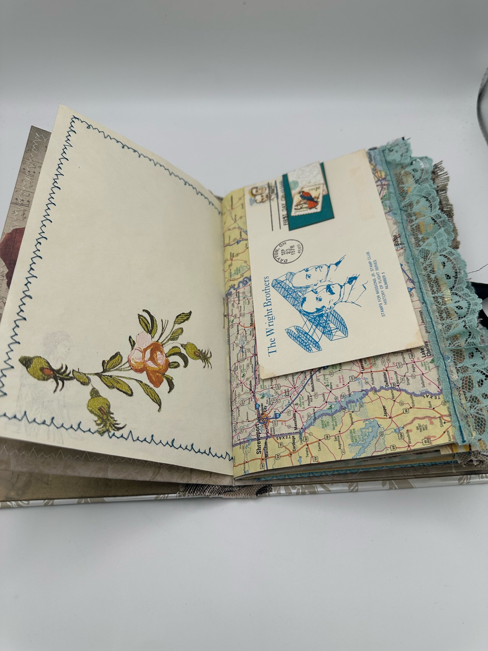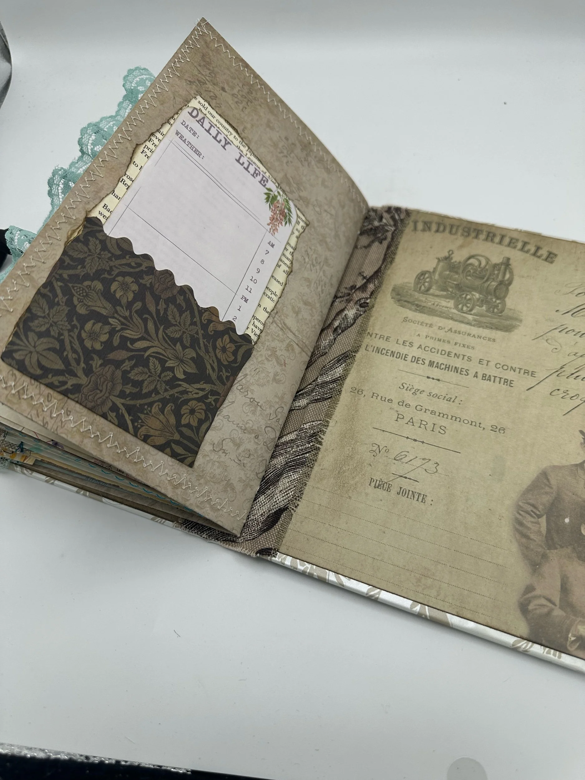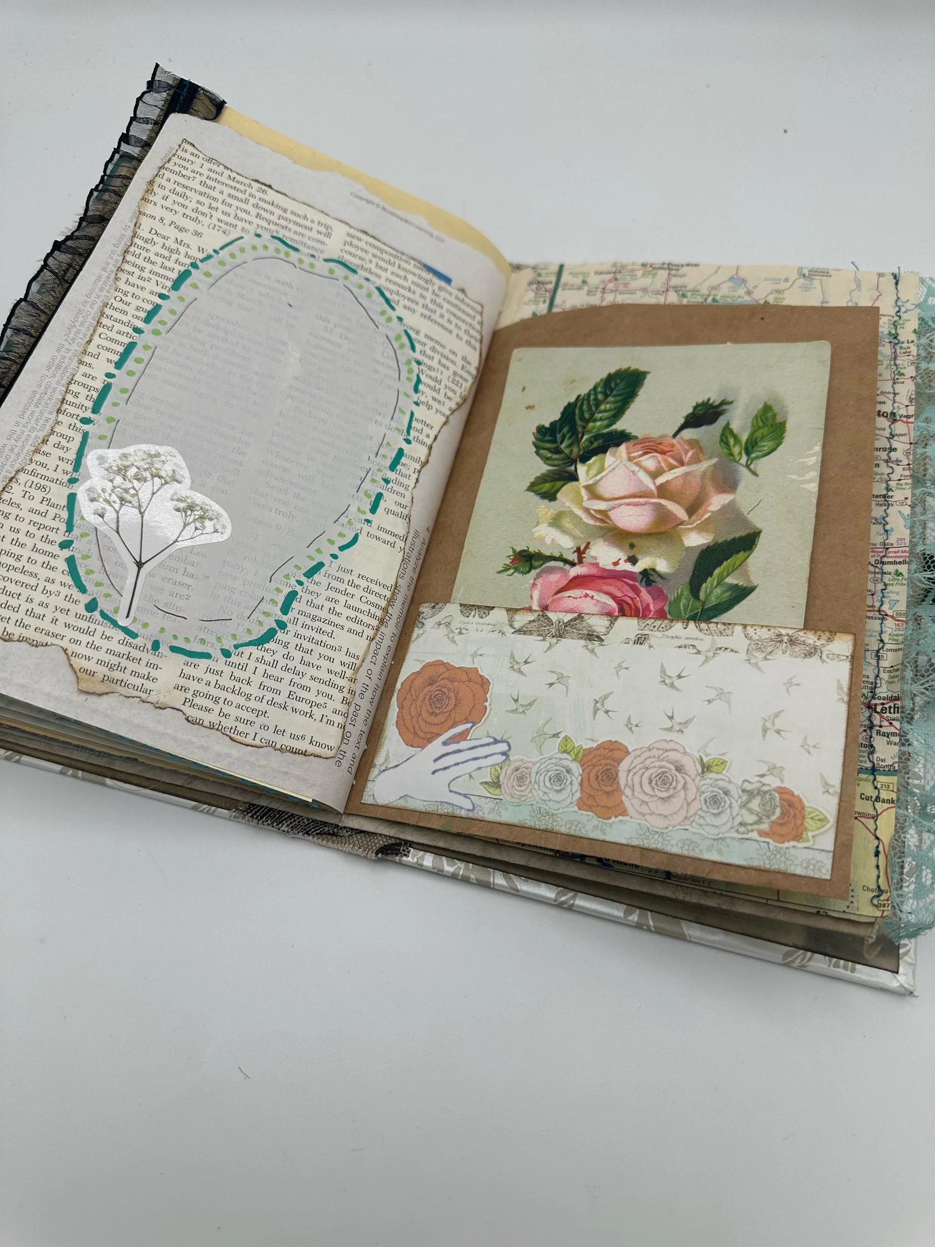 Inside you’ll find a mix of quality writing pages along with handmade and vintage ephemera tucked throughout — things like pockets, tags, journaling cards, layered papers, and unique old-world pieces that add character and spark creativity. Every page turn gives you something a little special while still leaving plenty of space to write.