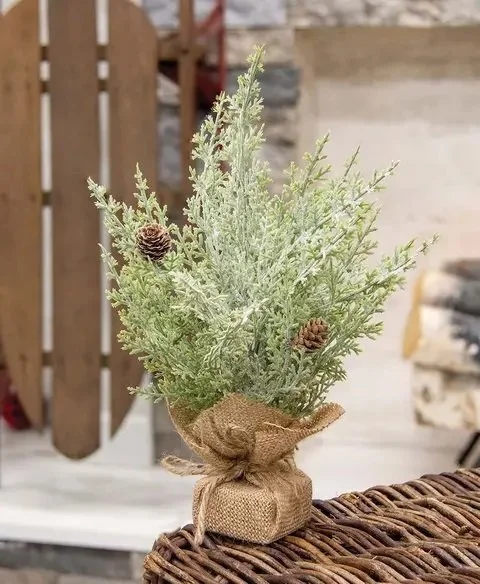 Frosted Woodland Cedar Tree w/Burlap Base, 12"