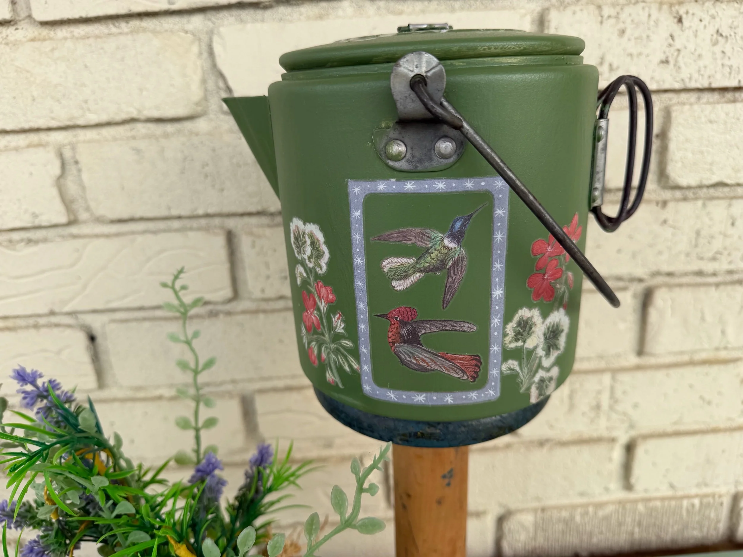 Home Decor Finds › Green upcycled camp pot. Image 1 of 3 Image 2 of 3 Image 3 of 3 Green upcycled camp pot. $16.00 Only 1 left in stock Add To Cart Added! Reviews Reviewer Name Review Date Star Rating Description Posted on Etsy Product Show More