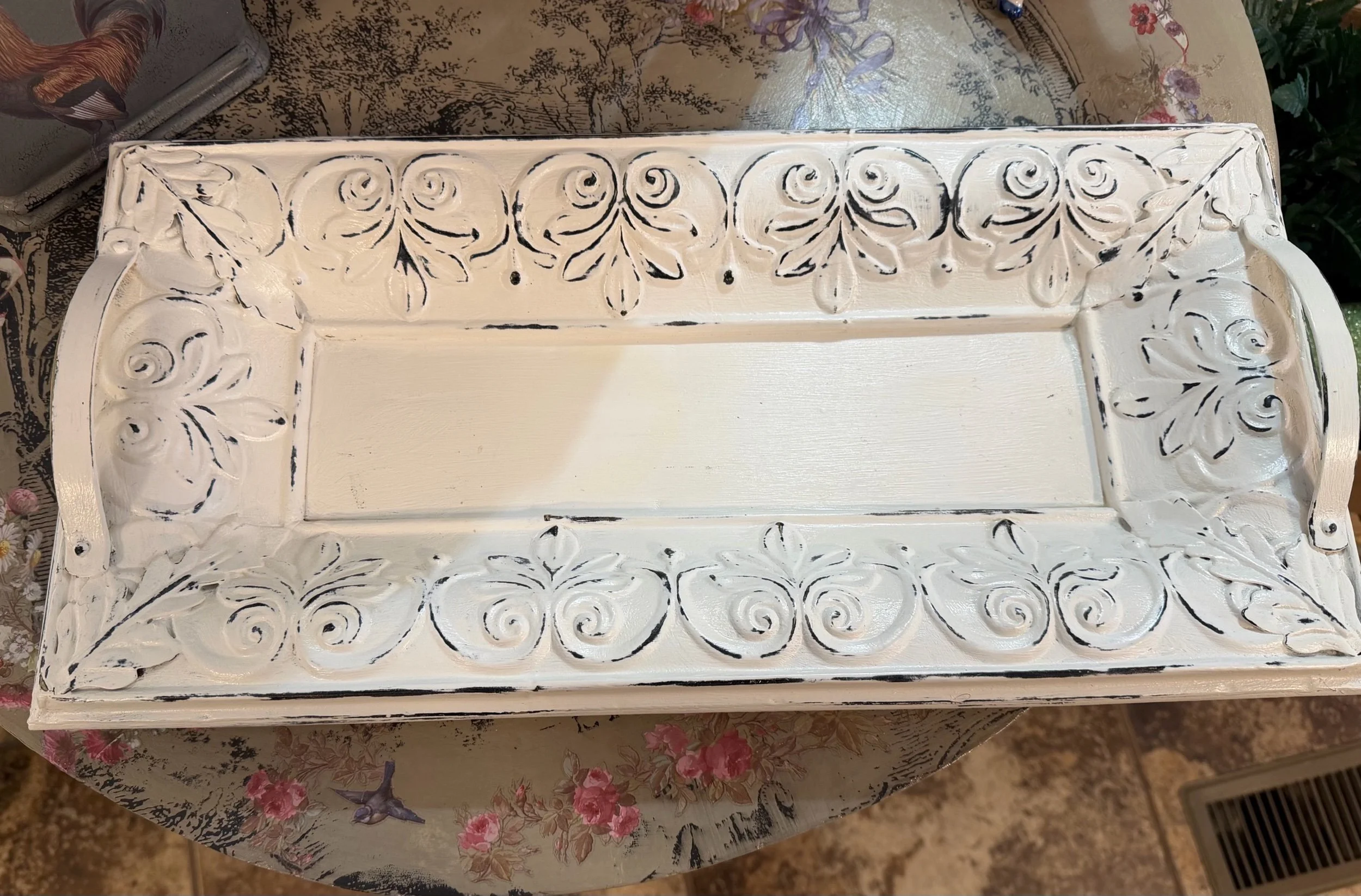 Home Decor Finds › Metal tray with handles Image 1 of 2 Image 2 of 2 Metal tray with handles $16.00 Only 1 left in stock 14x10 Add To Cart Added! 14x10 Reviews Reviewer Name Review Date Star Rating Description Posted on Etsy Product Show More