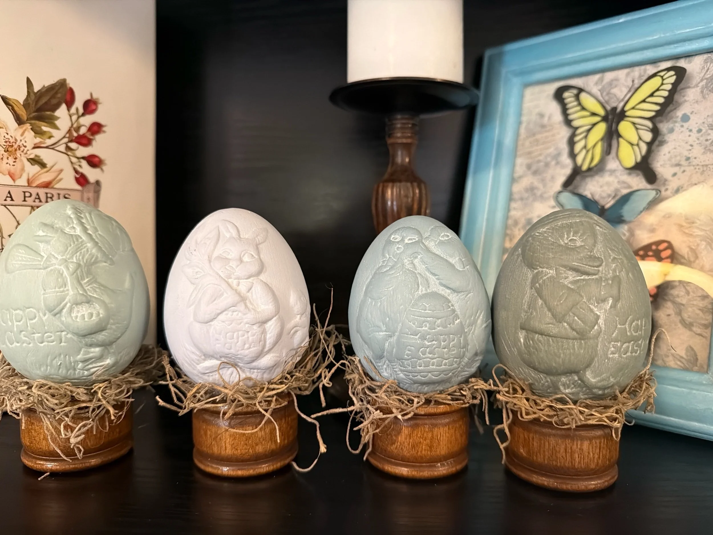 Home Decor Finds › Ceramic eggs on wood base (4) Image 1 of 1 Ceramic eggs on wood base (4) $14.00 Only 1 left in stock Add To Cart Added! Reviews Reviewer Name Review Date Star Rating Description Posted on Etsy Product Show More