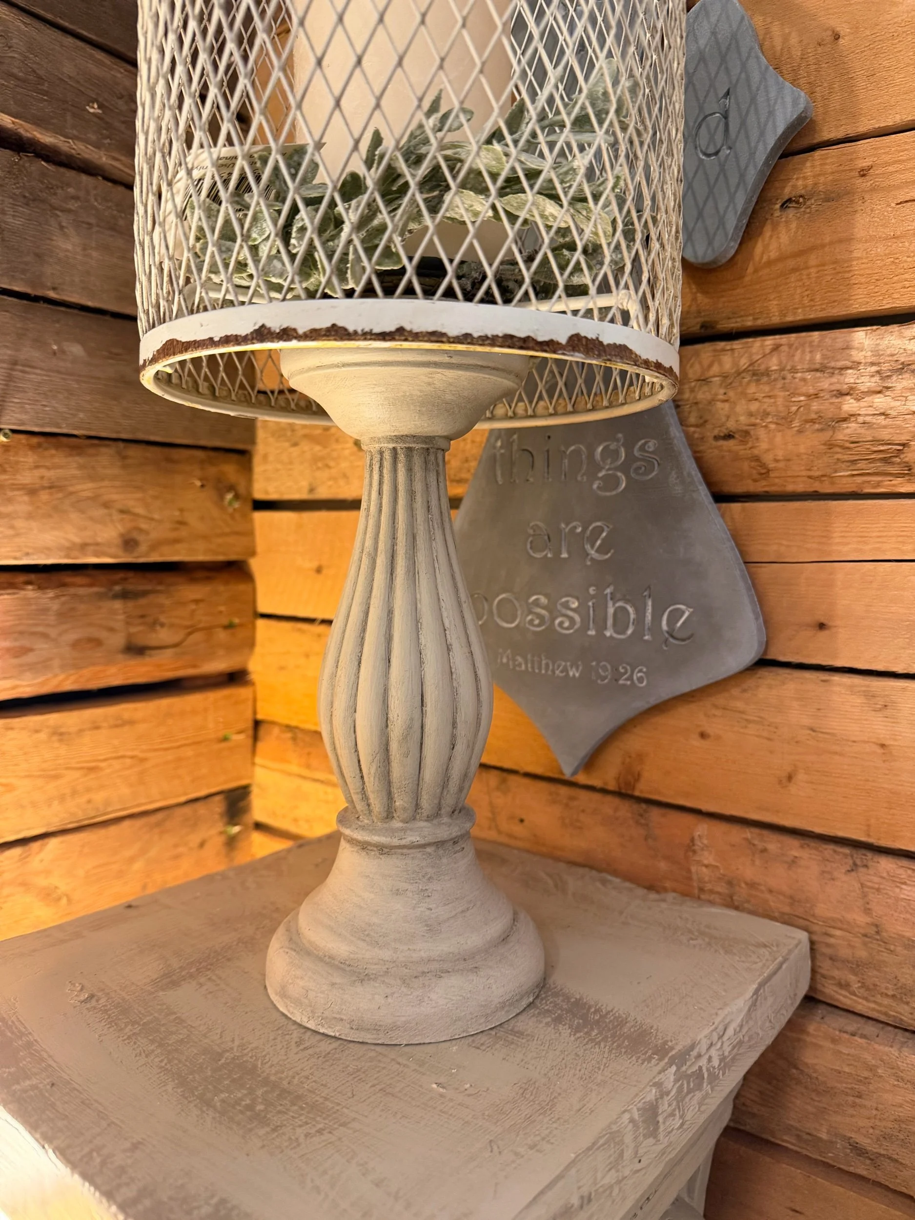 Home Decor Finds › Candlestick with wire shade (floral and candle not included) Image 1 of 2 Image 2 of 2 Candlestick with wire shade (floral and candle not included) $18.00 Only 1 left in stock 17 inches tall Add To Cart Added! 17 inches tall Reviews Reviewer Name Review Date Star Rating Description Posted on Etsy Product Show More