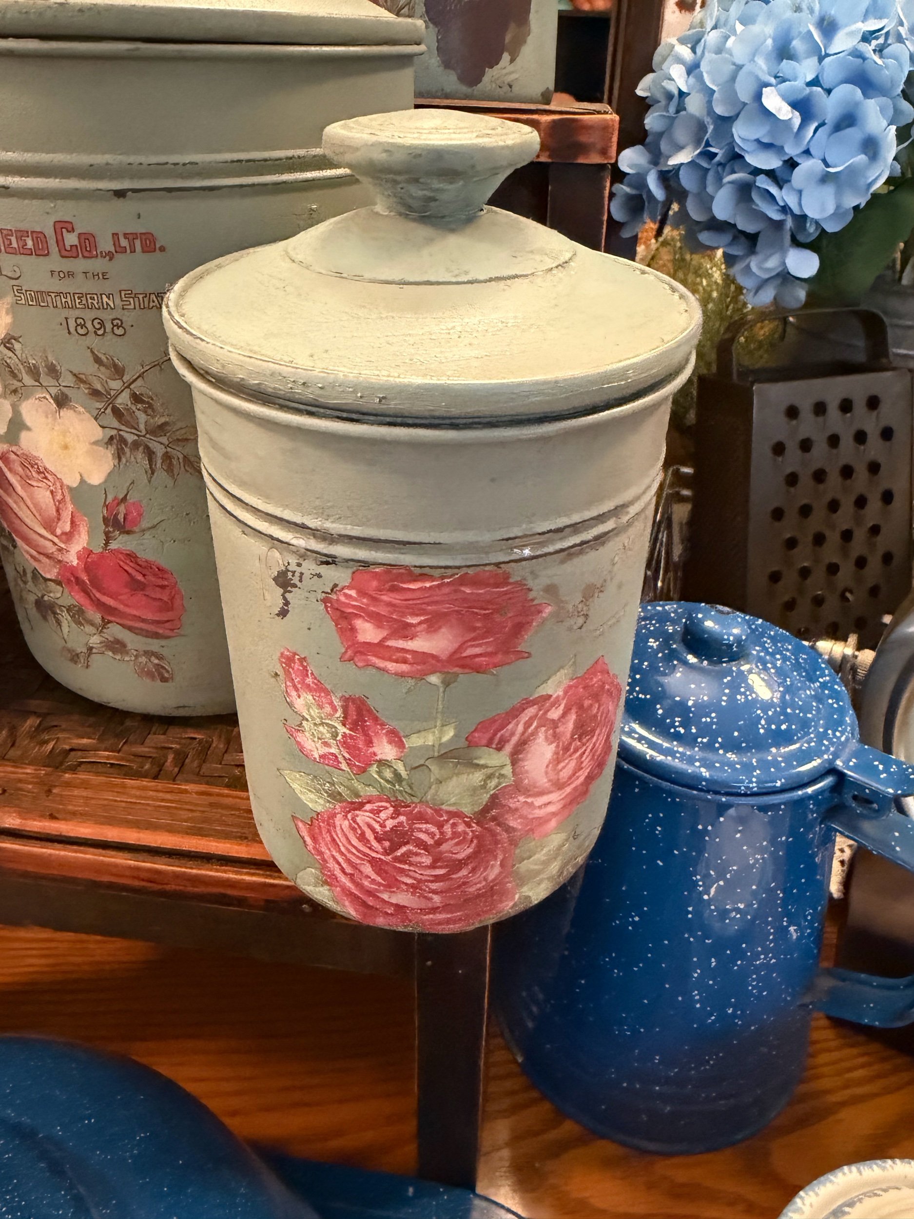 Home Decor Finds › Rose Canister Image 1 of 1 Rose Canister $10.00 Sold Out 7 inches Sold Out Added! 7 inches Reviews Reviewer Name Review Date Star Rating Description Posted on Etsy Product Show More