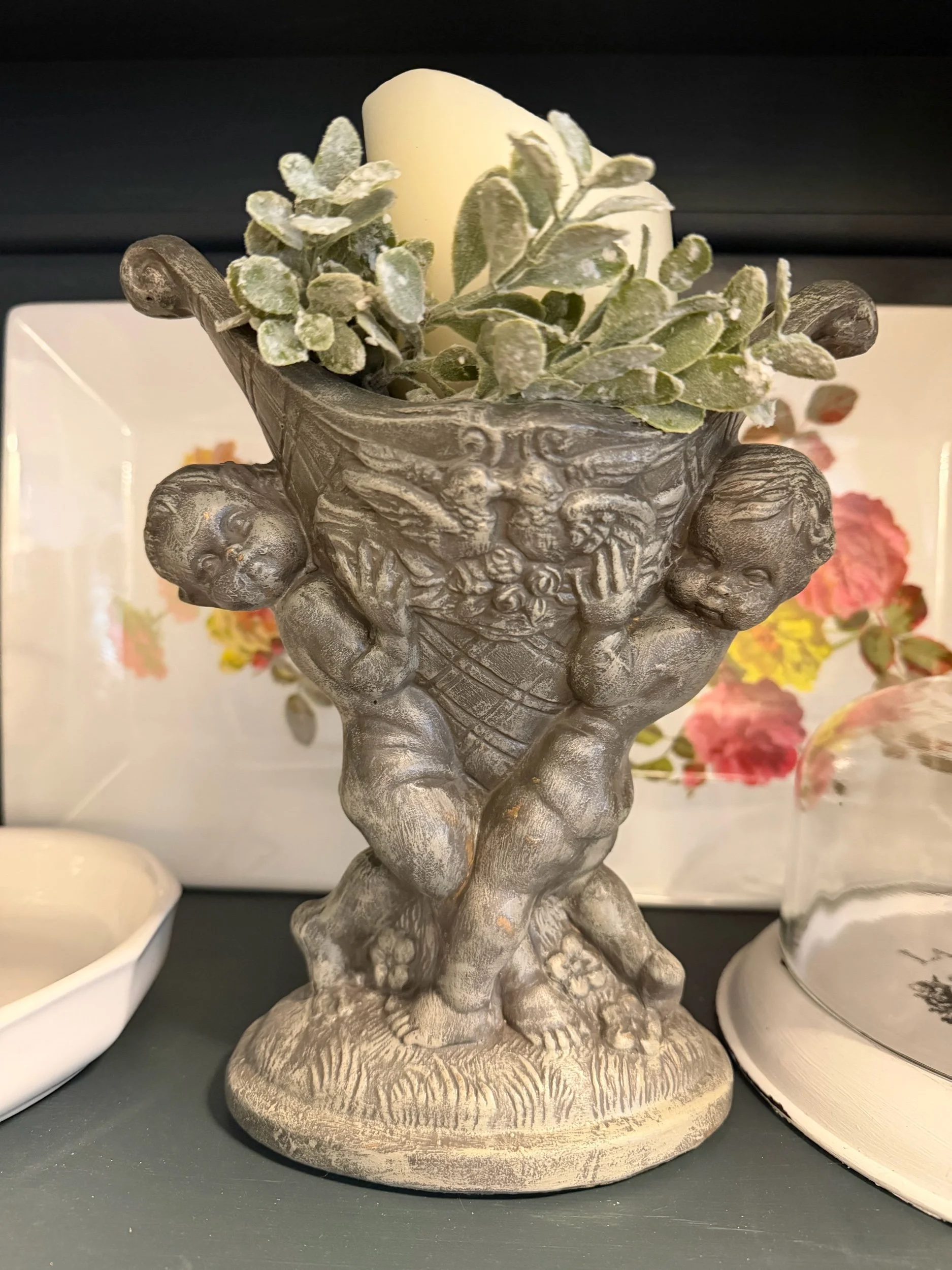 Home Decor Finds › Angel riser/candlestick Image 1 of 2 Image 2 of 2 Angel riser/candlestick $12.00 Sold Out 9 inches tallCandle and floral not included Sold Out Added! 9 inches tallCandle and floral not included Reviews Reviewer Name Review Date Star Rating Description Posted on Etsy Product Show More